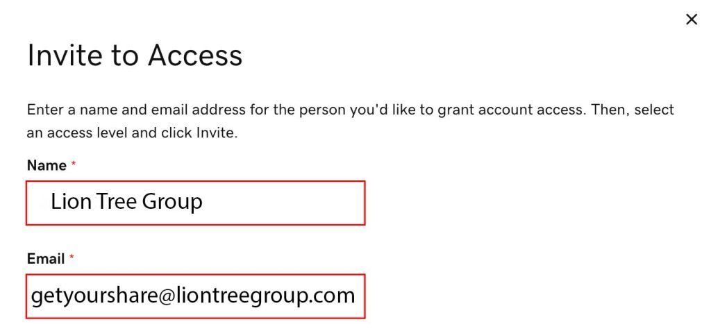 - Enter the Lion Tree Group for the Name and getyourshare@liontreegroup.com address for the email.